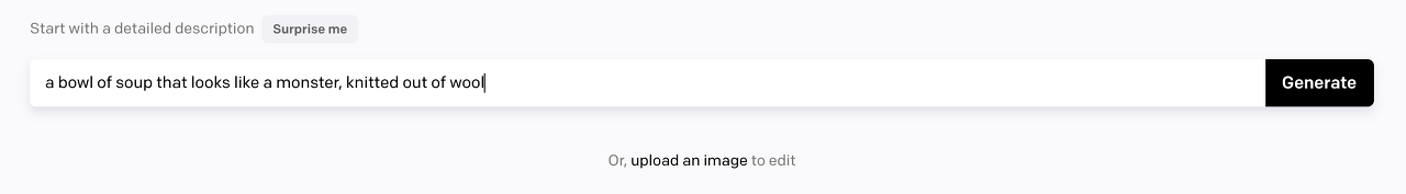 원하는 이미지가 떠오르지 않을 때에는 위에 있는 Surprise me 버튼을 누르면 다양하고 재밌는 아이디어를 제안해 줍니다.